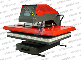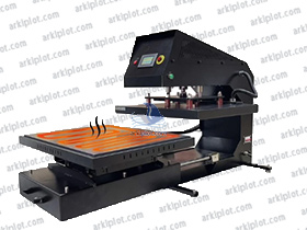 Ref: AK.LFP80110Prensa térmica neumática automática de alta presión con plato de 80×110 cm, bandeja inferior extraíble, controlador PLC táctil, potencia de 7,5 kW y temperatura máxima de 225 °C. Consultar para instalaciones monofásicas.