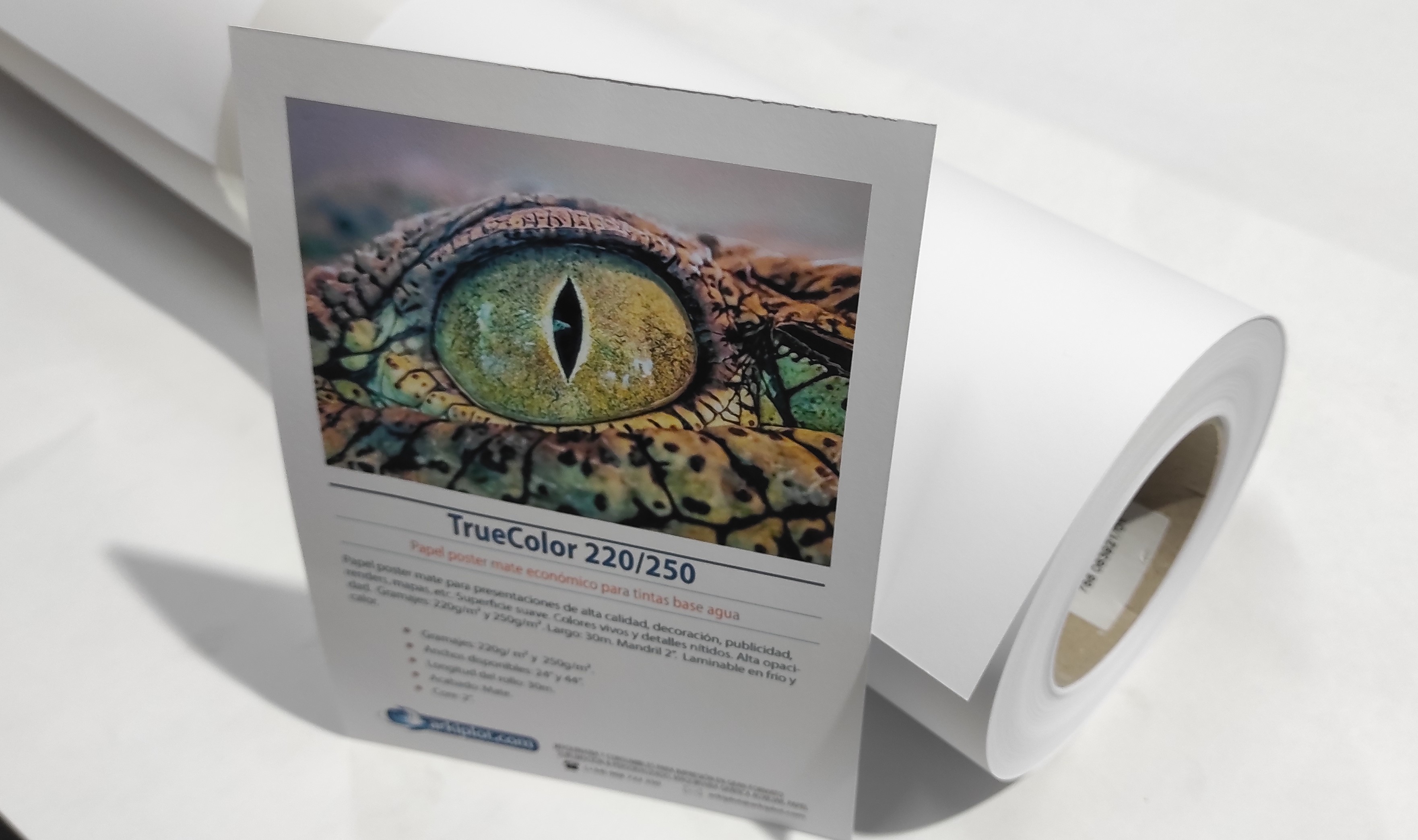 Te presentamos TrueColor 220 gramos, el papel para impresión base agua que marca la diferencia. Especialmente recomendado para posters y cartelería de interior, su superficie lisa con acabado mate consigue una definición impecable y unos colores intensos y llenos de vida.