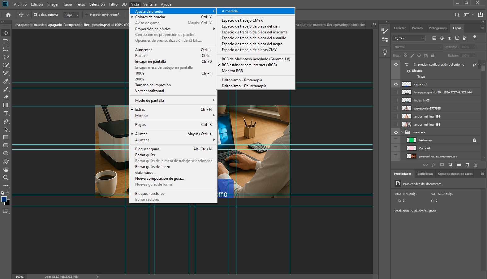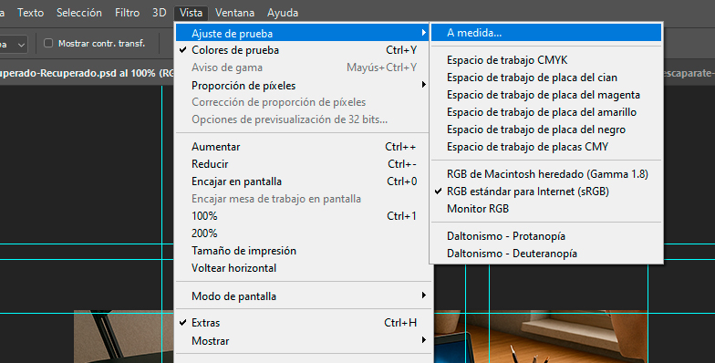 Una vez definido el ajuste, activa la vista desde Vista > Colores de prueba (Ctrl+Y).