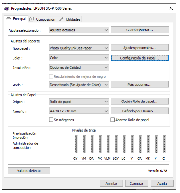 Desde el cuadro de diálogo de Ajustes de impresión: