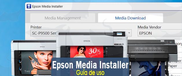 Epson Media Installer es compatible con sistemas windows y MAC y está disponible para los modelos SureColor P700,P900,P5300,P6500D,P6500E, P6500DE,P7500,P8500D,P8500DL,P9500,