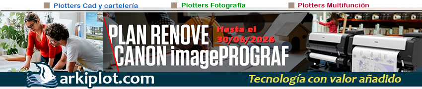 Modelos a renovar: Cualquier plotter base agua de Canon o competencia ≥24″ y ≥ 6 colores. Importe a descontar: Renove hasta 750€ Promoción válida hasta el 30 de junio de 2026. |