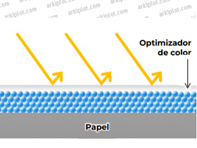 El Optimizador de Color suprime el Efecto Bronzing Proporciona a la superficie una capa de tinta transparente. Esto mejora aún más los negros y las áreas oscuras y la uniformidad de la imagen y el brillo. También suprime el efecto bronzing.